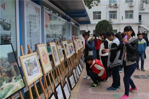 11月13日,赴太行山大峡谷写生基地写生归来的数字艺术专业组的一百多名师生,将各自创作的得意作品精心挑选、装裱,于校园内进行展出,通过对学习成果的展示这样一种特殊的方式献上对学校生日的祝福。