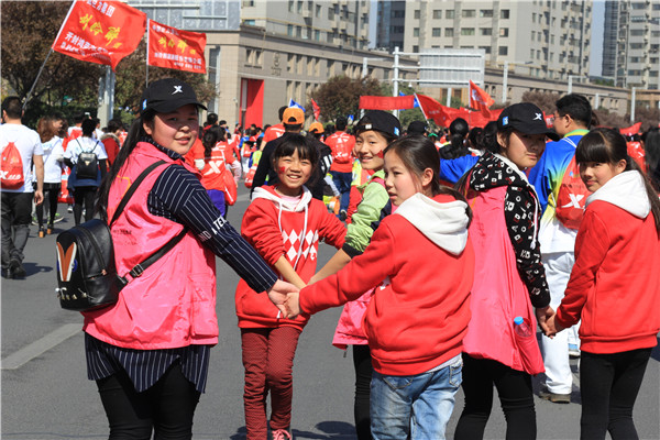 3月27日,郑州市电子信息工程学校小水滴志愿服务队携手荥阳乔楼民族小学留守儿童,共同参与郑开马拉松国际比赛。
