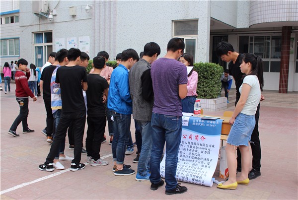 5月26日,一场为应届毕业生“量身订做”的校园招聘会在郑州市电子信息工程学校举行。本届招聘会共吸引了40多家知名企业参会,提供涉及计算机、电子、设计、旅游、酒店管理等专业的500余岗位,供全校2014级毕业生“挑选”。格力电器、京东方科技、海尔空调、光力科技、新天科技、锜昌科技、亚龙金刚石制品有限公司、鹏博士、平安保险、丹尼斯大卫城、裕达国贸、春秋旅行社、超凡装饰、河南省通信设计院、北京华联等企业纷纷到场,招兵买马。通过咨询、面试,现场签订就业意向的毕业生不在少数。