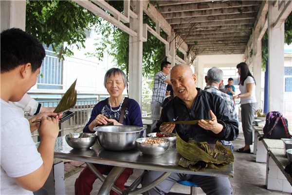 “我要带点粽子回去送给我的街坊邻居,告诉他们这是我亲手包的爱心手工粽,哪都买不来。”张叔叔满脸的自豪。