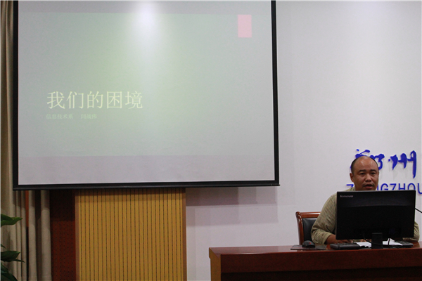 信息技术系闫战伟主任阐述自己在工作过程中发现的职业教育存在的问题,并进行深入分析。闫老师认为,职业教育中学生和老师们在教学、升学和就业中遇到的诸多问题,主要是由人文环境的困境、产业环境的困境和自身的困境等原因共同造成的,走出这些困境需要全体老师群策群力、解决问题。