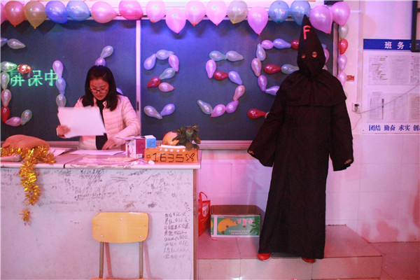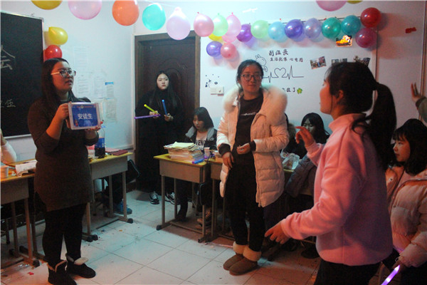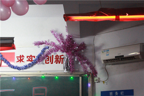 从前几天起,各班的师生们就开始准备了。除了购买糖果和饮料,同学们还亲自动手,用彩纸、拉花、气球和雪花饰品将教室布置得五彩缤纷,充满节日气氛。各班准备的节目也都轻松活泼,积极向上,洋溢着清纯的气息。