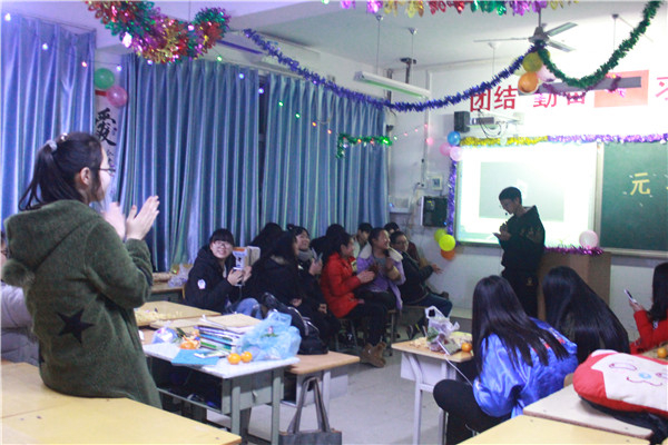 12月29 日晚,欢声笑语从校园的各个角落流淌出来。在元旦佳节到来之际,学校“迎新年、庆元旦”学生联欢会在各位班主任的组织下,分别进行。