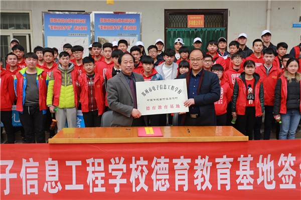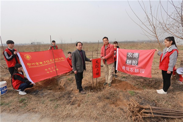 3月10日,郑州市电子信息工程学校师生进行植树社会实践活动,并与傅說农耕园、石洞沟村古村落签订校外德育实践基地合约。