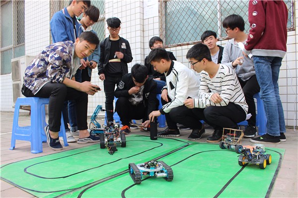 在闭幕式前的专业成果展演中,现代制造系拿出了高科技的教学产品——光机电手动抓球和遥控小车竞速,引来了学生的好奇;信息技术系的点钞比赛,给人以眼花缭乱的感觉;艺术设计系手绘插画、美发造型,让爱美的女生都激动不已。