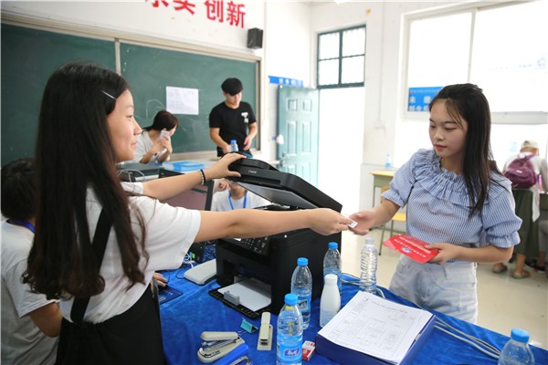 在报到的整个过程中,17级艺术设计系新生王蒙蒙虽然不多语,却总是眼角带笑,展现出大方、自信、温婉的气质,赢得老师、学长、舍友的好评。