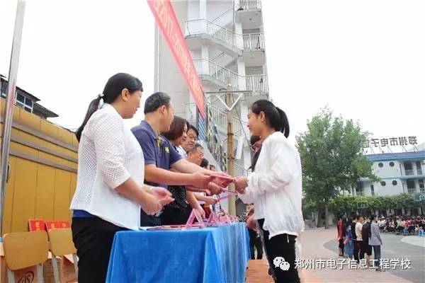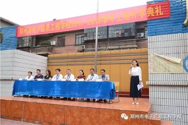 2017年8月28日,郑州市电子信息工程学校典礼暨颁奖仪式在我校操场伴随着庄严肃穆的升旗仪式拉开帷幕。仪式由学校党委书记张凯主持,李京辉校长、张凯书记、高勤华副校长、于蓉副校长、李滢副校长、郭宝生主席、史秀丽书记、焦火锡副校长出席了仪式。