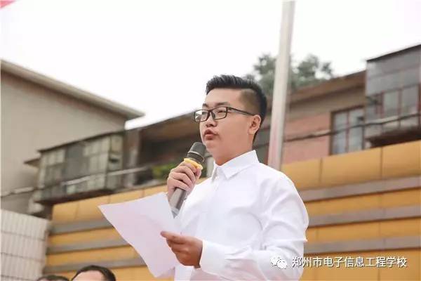 与之相呼应的是信息技术系1507班的闫小哲学生代表发言。他用个人校园经历启迪新生,并代表全体老生感恩校园、感恩老师、感恩同学,最后他代表全体学生宣誓:争做优秀学生,为学校再添华彩。振奋之余,又引“今日你以电子信息工程学校为荣,明天电子信息工程以我为傲”的经典之句来与全体同学共勉。