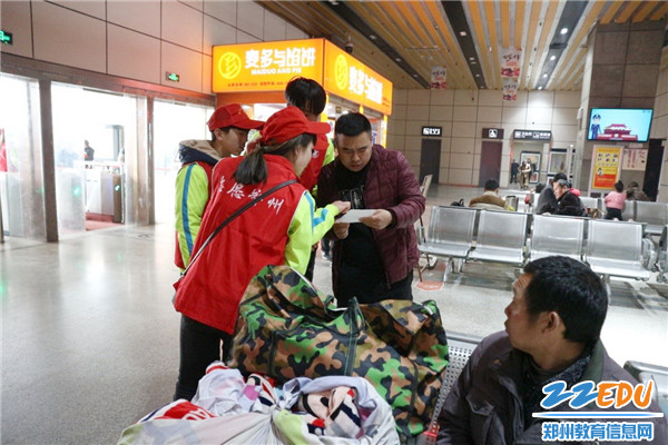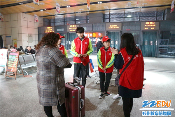 3月11日,郑州市电子信息工程学校的志愿者们在高勤华副校长、政教处主任张丽君、政教员赫建富的带领下,来到郑州长途客运汽车东站开展志愿服务活动。