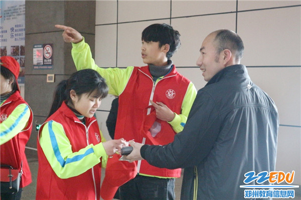 早上7点20分,该校11名学生志愿者们便已集合完毕,整装待发。出发之前,高勤华副校长和张丽君主任向志愿者强调了活动过程中应该注意的细节。到达目的地郑州东站之后,志愿者随即分成两组开展工作,一组在入站口、检票处进行进站引导活动,另外一组在车站上车处帮助乘客搬运大件行李。在检票处,志愿者们耐心地提醒乘客通过检票口,并在乘客从安检口取行李时帮助维持秩序。对路线不太熟悉的乘客,志愿者会适当地为他们提一些建议,帮助乘客选择车次。面对无数次相同内容的询问,志愿者们总是面带笑容,耐心解答;面对需要帮助的旅客,志愿者们热情上前给予帮助,不嫌烦累。