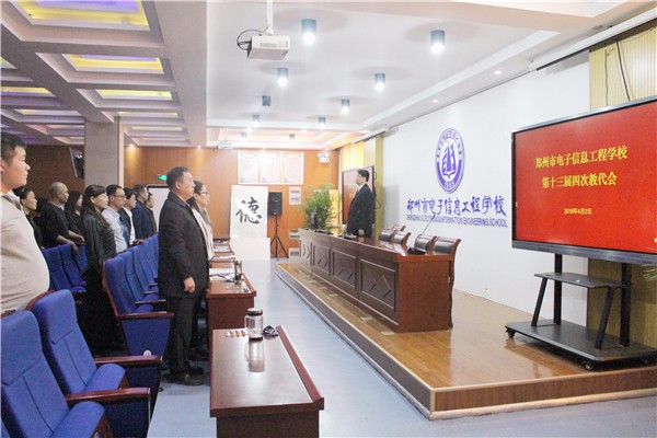 2018年4月2日下午,郑州市电子信息工程学校召开第十三届四次教代会。校长李京辉、党委书记张凯、工会主席郭宝生以及近60名教职工代表参加了大会。