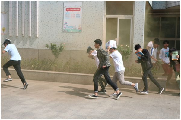 学校事先成立了专门的演练领导小组,明确了人员职责分工,制定了疏散路线。上午9:40分,地震报警声在校园响起,立即启动地震应急疏散安全紧急预案,并按地震疏散演练路线进行逃生。