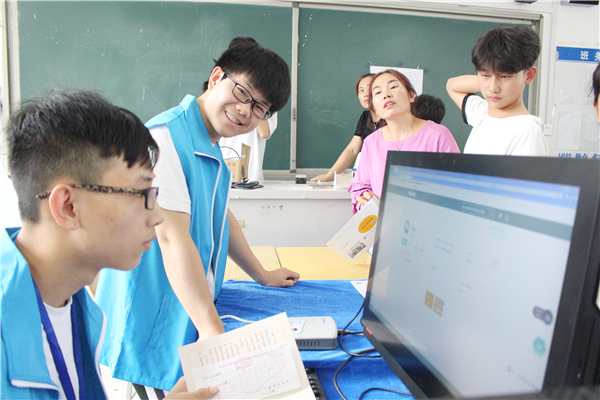 8月16日清晨,郑州市电子信息工程学校的校园内,一群穿着蓝马甲的少年穿梭在报名的人流中,为新生和家长们提供各种帮助。这群少年蓝马甲背后的文字解释了他们的身份,也昭示了他们的志向,他们是郑州市电子信息工程学校的青年志愿者,在本次迎新报名工作中为新生和家长们提供志愿者服务。