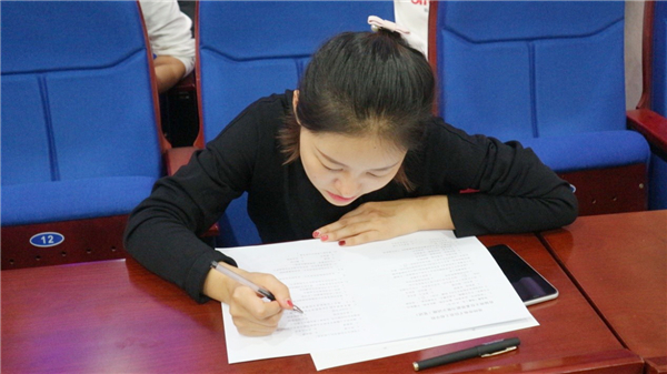 这次比赛面向校内所有现任班主任教师,共计40余名班主任报名参赛。比赛分为笔试和面试环节。10月15日下午进行的是笔试环节。笔试题目由主题班会方案设计和相关理论知识测试两个具体项目组成,形式为闭卷。参赛班主任中,既有从事班主任工作二十年的资深老教师,也有刚入职一年的青年教师。虽然年龄和经验有差别,但认真的态度都是一样的。考试一开始,各位班主任就进入了状态,各一位都认真细致、一丝不苟。