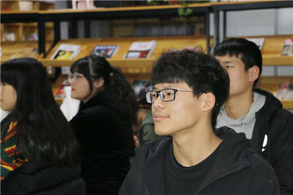 陈老师的朗诵结束后,同学们开始了自己的风采展示。大家按照事先抽好的顺序进行朗诵,从一号到三十九号,每一位同学都表现出了自己的勇气和风采,而且还有几位同学很用心,不仅脱稿朗诵而且还配了音乐。尤其是1822班的牛忠双同学,作为18级的新生,虽然还有一些拘谨,但是音乐和朗诵配得极好,赢得了老师们的认可和同学们的喝彩。
