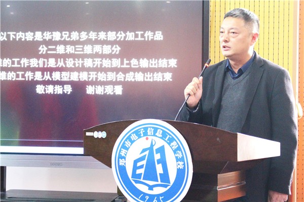 2018年11月14日,郑州市电子信息工程学校迎来了河南华豫兄弟动画影视有限公司毛雪冰董事长及韩国映像大学副校长柳在万,并举行了2018郑州市电子信息工程学校游戏影视动画人才河南华豫兄弟订单班签约挂牌仪式。