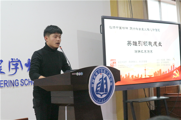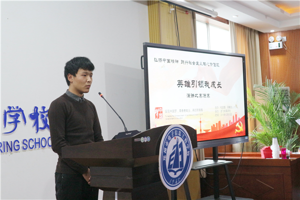 12月12日下午,由郑州市电子信息工程学校团委、政教处主办,该校“语飞扬”演讲社承办的,以“践行社会主义核心价值观之英雄引领我成长”为主题的演讲比赛在该校大会议室成功举行,该校副校长高勤华、政教处主任张丽君、团委书记刘波和语文专业多位老师担任评委。