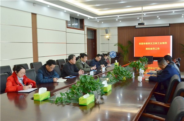 12月14日,郑州市总工会科教文卫工会郑建华主任一行2人来到郑州市电子信息工程学校调研指导工会工作,该校党委书记张凯、工会主席郭宝生以及工会委员代表参加调研。