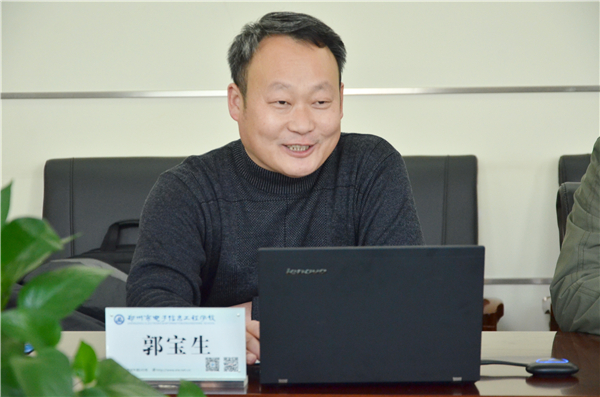 郑州市电子信息工程学校工会主席郭宝生汇报工作