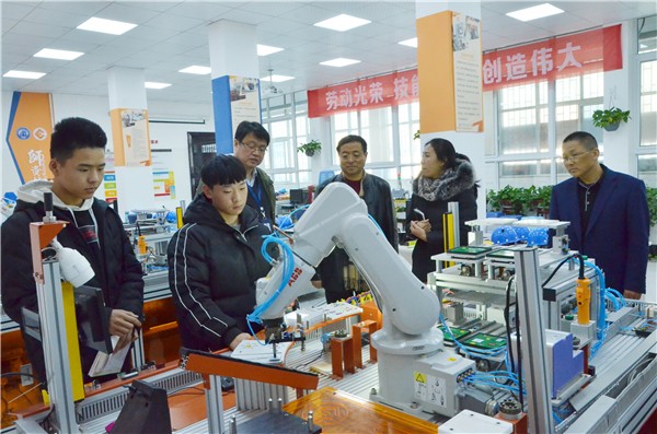 随后,调研组走出会议室,来到了校史文化长廊、机器人实训室、校园电视台等地方进行参观,对学校的办学情况有了更为深刻的了解。在参观过程中,郑建华主任对学校注重学生专业技能培养、重视校园文化活动给予了高度评价,并对师生的精神面貌给与了充分的肯定。
