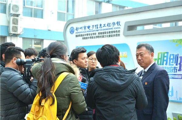 市教育局党组成员、副调研员王巨涛带领21人采访团队到访郑州市电子信息工程学校