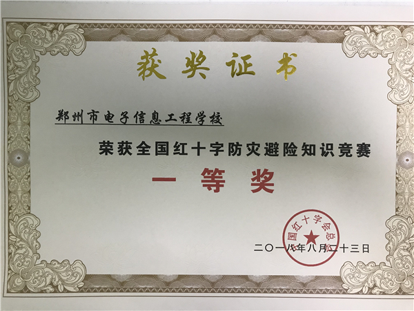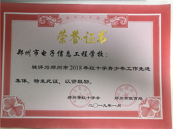 1月17日上午,在2019年郑州市红十字青少年工作会议上,郑州市电子信息工程学校连获“2018年红十字青少年工作先进集体”、“全国红十字防灾避险知识竞赛一等奖”和“郑州市2018年红十字青少年工作先进个人”三项殊荣。
