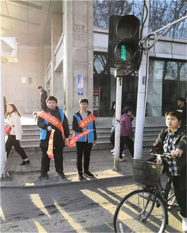 认真维持交通秩序 彰显学子青春风采