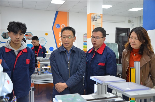 座谈会结束后,督导组专家走访了学校的多个实训室,更深入地了解了学校在校企合作方面取得的成绩。三年来,在保持原有实训室设备不断更新丰富的同时,学校还先后新建成了校实习实训工厂、创客基地、施耐德实训室、高铁实训室、机器人实训室、茶艺实训室等多个学生实习实训场所,为学生提升技能水平创造了良好的条件,受到了督导组专家的肯定。4月10日早晨,督导组专家随机抽取班级进行了随堂听课,并在教师、学生和家长中开展了网络调查,从多个角度了解三年规划在教学工作中的落实情况。