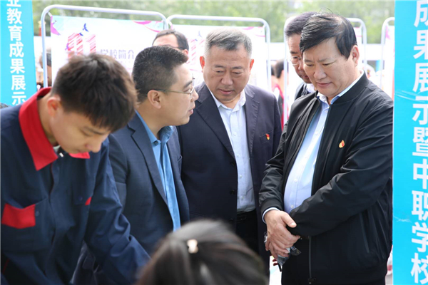 郑州市教育局党组书记、局长王中立与郑州市电子信息工程学校师生交谈