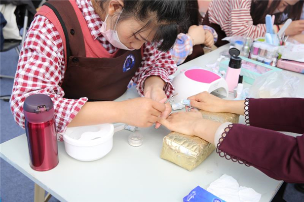 对于来到该校展位的参观者而言,在被艳丽的妆容服装精彩展示一饱眼福之后,再体验一把贴膜、美甲的便民服务,则是不一样的愉快体验;而后进入专业主场,花式点钞、VR3D动感体验使人见证了职业教育的专业性,电子电路装调实用电路板则现场展示了指纹门禁电路、数字语音播报万年历电路、数字收音机电路、模拟视频监控电路的原理及操作流程,让人更直观地看到电子电路专业与生活息息相关的前沿技能。