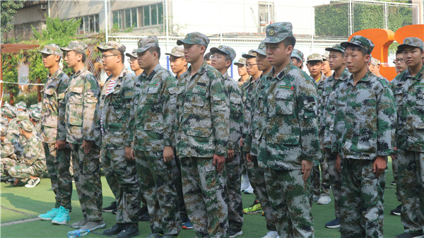 开幕式后,各班就展开了紧张的训练。虽然中午烈日炎炎,但是站军姿、报数、整队都有条不紊地进行,无论是教官还是学生,都一丝不苟、认真对待。学生们不惧辛苦,默默坚持;教官们悉心教导,身体力行;老师们全程陪练,加油打气,给学生们提供强大的后勤保障。一句“孩子们,再苦再累,老师陪你们一起走下去,加油!”让全体新生精神倍增。