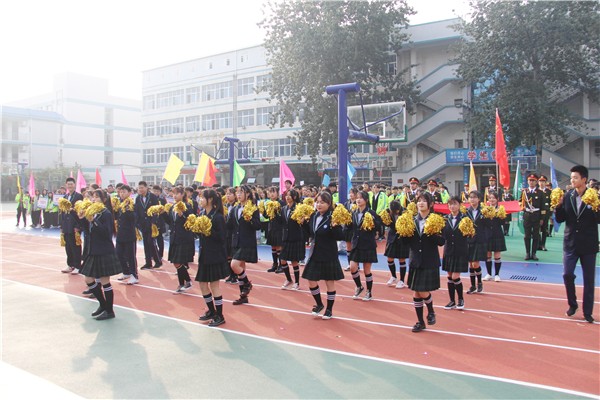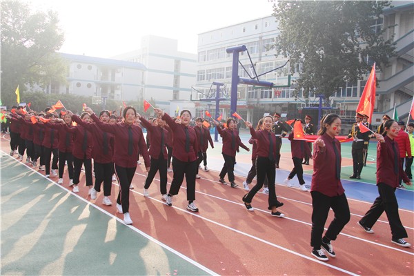 入场时开始后,学校国旗班整齐庄重地引领着各班方阵依次入场。师生们着装整齐、精神抖擞,迈着矫健的步伐在嘹亮的口号声中走向主席台。各班学生各展才艺,用舞蹈、方阵等不同的形式展现出积极向上的精神面貌。全场奏唱国歌之后,运动员代表和裁判员代表分别宣誓,李京辉校长宣布运动会正式开始。