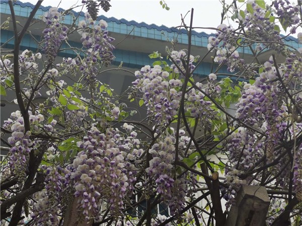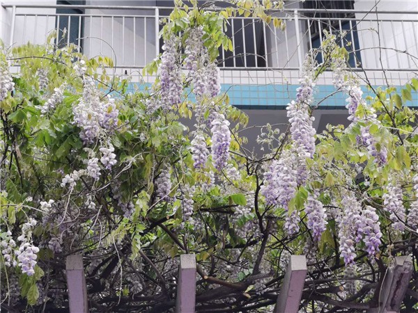 后院的紫藤,花满枝头,阳光下如雾霭似云飘