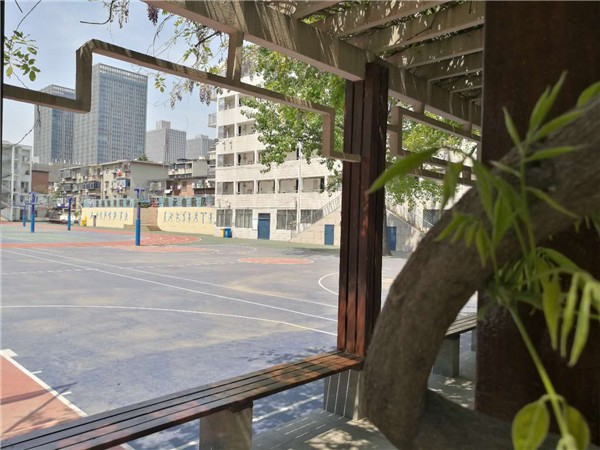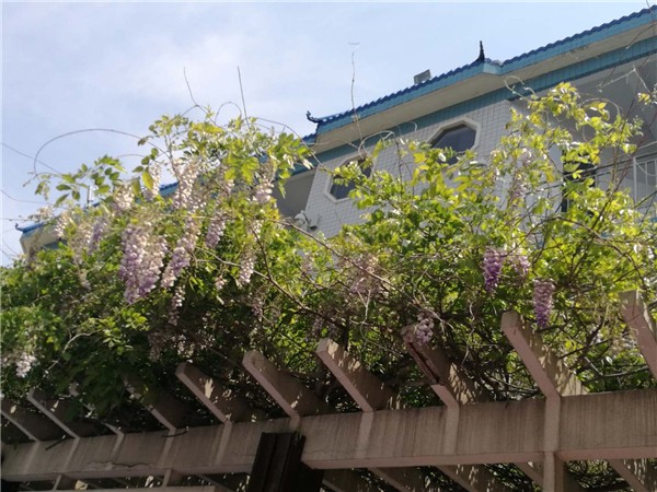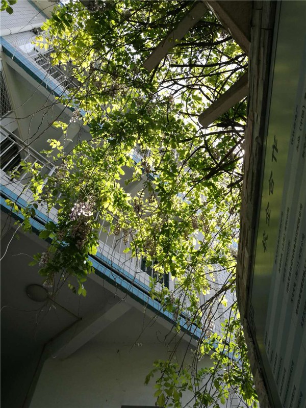 教学楼顶的月季姹紫嫣红