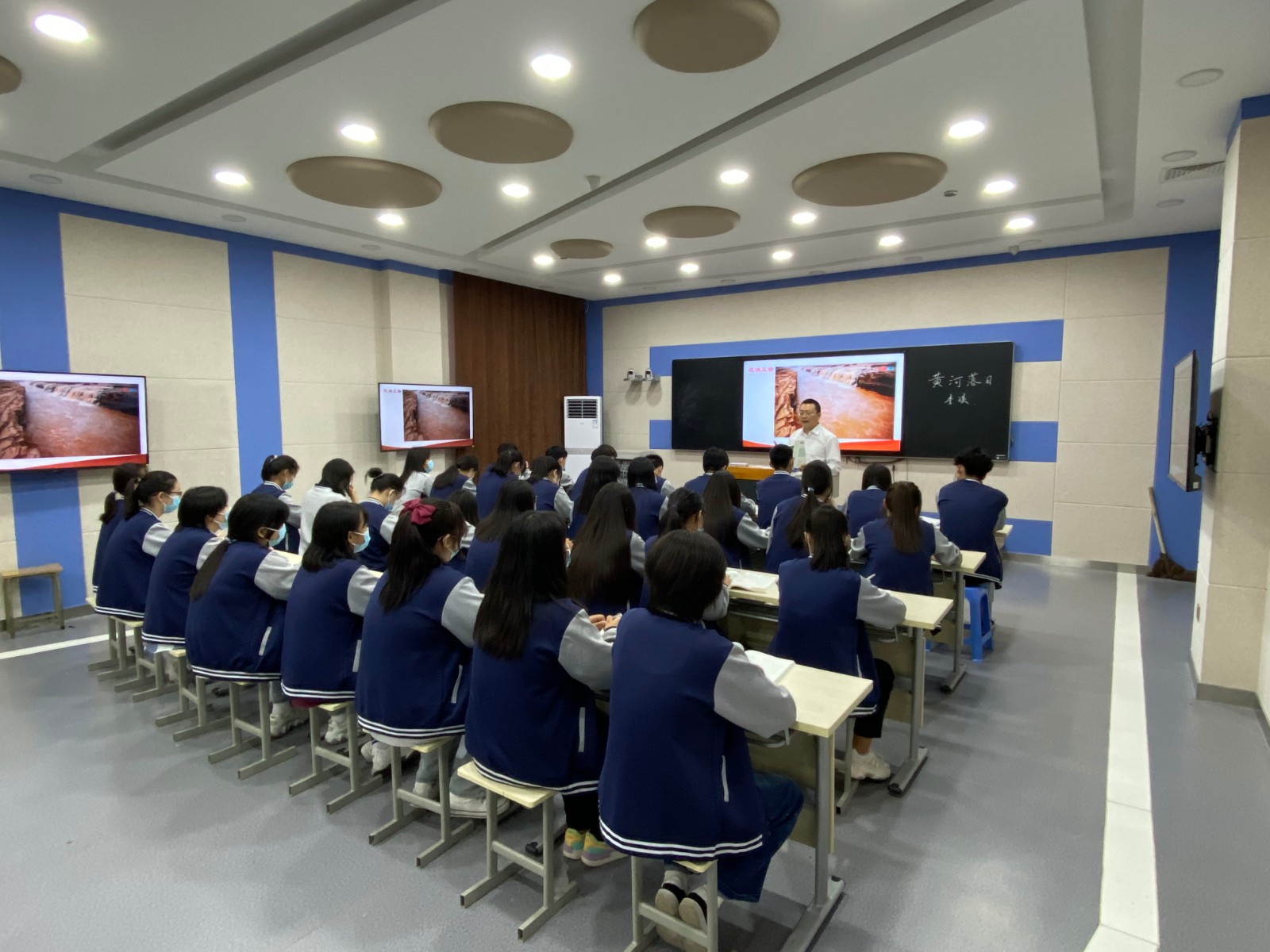 孙海潮老师是我校诚敬国学社的负责人,他坚持传承和发扬我国优秀的传统文化,矢志不移。他讲的《黄河落日》大气磅礴,气势恢宏,把民族精神和民族文化融入了这节课,课堂内容又结合当下的疫情,对学生进行了爱国主义和民族情怀的教育。