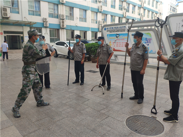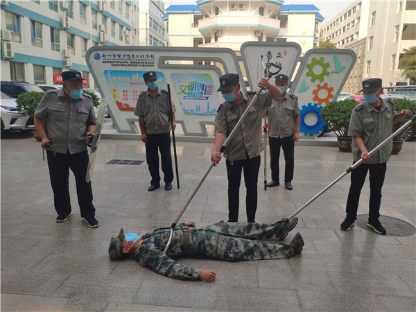 为进一步加强校园安全管理,提高安保人员安全责任意识与反恐防暴能力。2020年9月15日,郑州市电子信息工程学校开展了安保人员技能培训练兵活动。