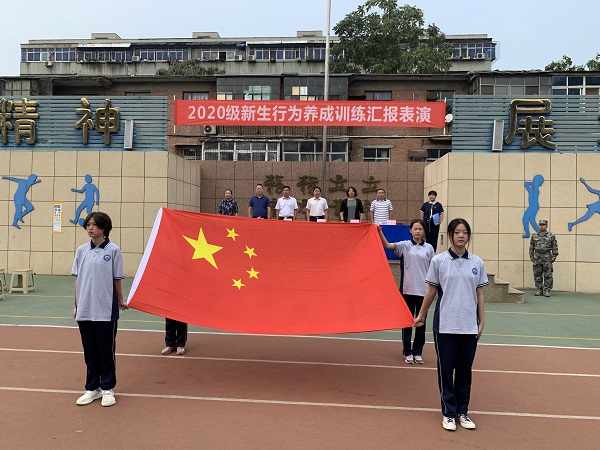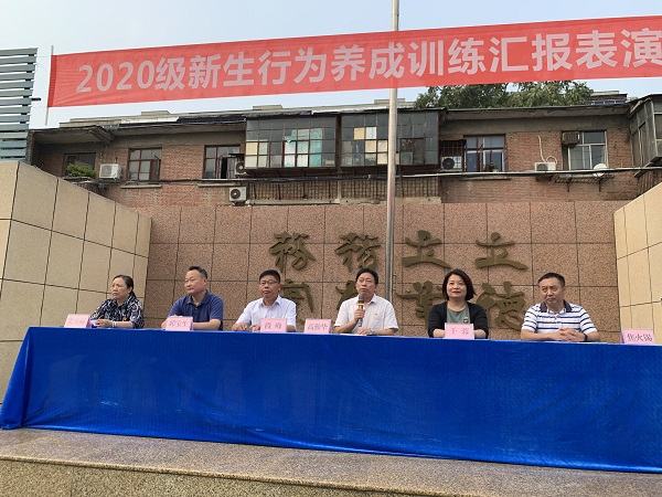 下午三时,我校2020级新生行为养成训练展示活动如期举行。郑州市国防科技学校段峰校长、军教处顾勇主任及我校相关领导、班主任参加了大会。