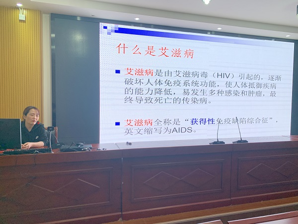 讲座中,蔡医生从艾滋病的基本知识、流行情况、危害、预防日常注意事项、核心信息等五个方面讲解了艾滋病预防的主要内容,以图文结合的讲解方式,让大家对我国艾滋病病情流行概况和发展趋势有所了解,并意识到开展防治艾滋病活动的必要性。蔡医生通过大量精确的数字、案例以及直观的图片,从艾滋病感染人群分布、传播途径、艾滋病病毒特征、艾滋病的防治工作及日常注意事项方面逐一进行了详细讲解。她倡导学生要自觉遵循健康文明的生活方式和行为准则,呼吁广大师生主动检测、主动防控,避免遭受艾滋病病毒感染。