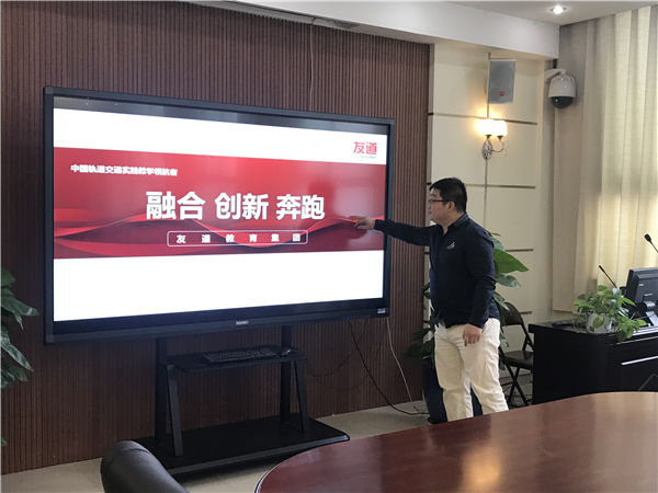 参观结束后,双方在合作共赢的愉快气氛中进行了座谈。会上,校企双方分别作了简要介绍,围绕轨道交通产学合作、产教融合、协同育人,1+X书证融通,以赛促学、以赛促教及成果转化等方面进行深入洽谈。智联友道科技有限公司作为国内新兴的IT教育和轨道交通教育领军企业,致力于为高校提供基于互联网+“创新、创意、创业”设计、深化学生创业实践、工管结合、理实一体的操练平台。近年来成功承接轨道交通信号控制国赛赛项,为轨道交通教育和校企合作的发展做出了突出贡献。