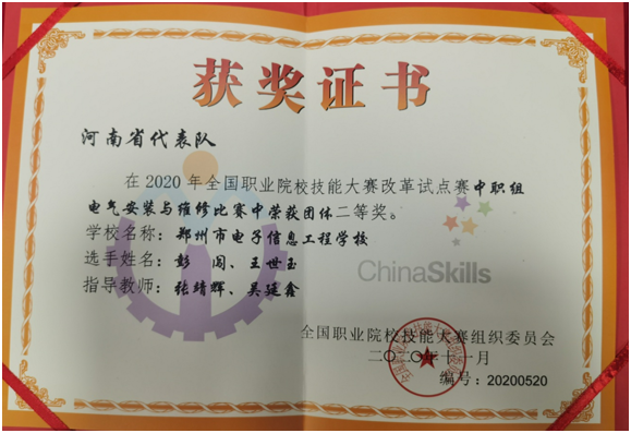 郑州市电子信息工程学校学子荣获2020年全国职业院校技能大赛试点赛银牌