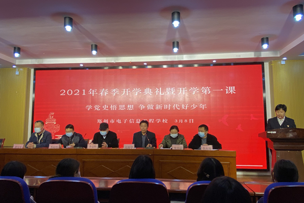 3月8日,郑州市电子信息工程学校举行了以《学党史悟思想 争做新时代好少年》为主题的2021年春季开学典礼及开学第一课活动。开学典礼以网络课堂的形式展开,由校团委书记刘波主持,校党委书记、校长李京辉、副校长高勤华、副校长李向伟等领导及全体师生共同参与。