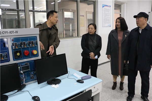 在河南省物流职业学院行政、教学、管理等部门负责人的陪同下,学校领导班子集体参观了物流实训基地、物联网基础实训室、智能城市模拟沙盘及图书馆、中心机房、教学质量监控室等现代化的教育教学环境,对高职院校高标准专业建设有了初步认识。随后,领导班子走进了学生教室,对电子黑板、监控设置、班牌管理等方面进行了详细的了解,带着问题思考中职教育教育环境设施更新的问题。