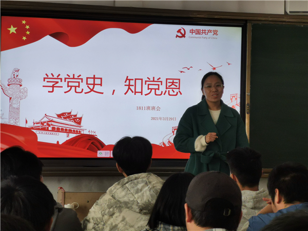 “学史明理、学史增信、学史崇德、学史力行”。校团委通过主题班会、团课、主题团日活动等形式引导学生向党团靠拢,让学生深入地了解党、学习党的相关知识。