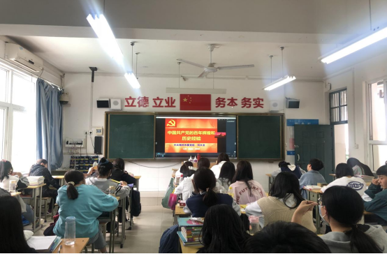 学生认真听讲中国共产党的百年辉煌和历史经验