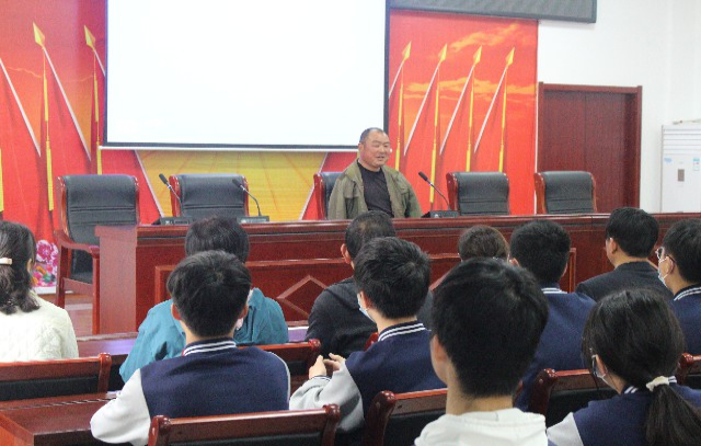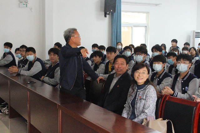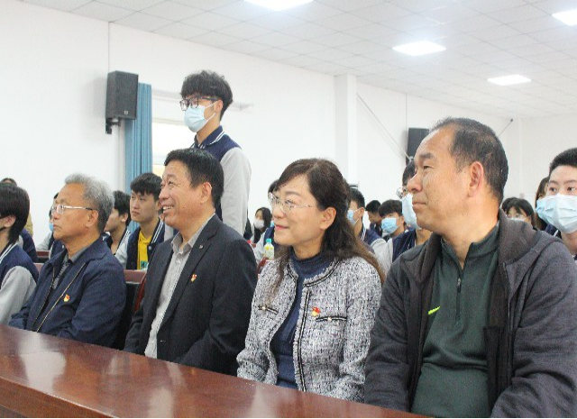 接着,2018年感动中原十大人物——“羊倌”曹建华为我们分享了他的感人事迹。据介绍,自幼因一场事故失去了双臂,小时候的生活极其艰难。长大的生活依然不好,但是他身残志坚,以养羊为生,由最初的几只,一直发展到现在的100多只。在养羊的过程中,他靠着坚强的意志和毅力,克服重重困难,取得了很多正常人都难以达到的成效。当有同学问及你为什么放弃低保时,他回答说:“低保是救命的钱,我过的还可以,不能拿这个钱。”并且,他还经常捐物捐钱资助其他的人。他说的话让同学们深受感动,同学们现在享受着国家助学金,更应该珍惜机会好好学习,将来回报社会。在接下来提问环节,有同学问他是怎么用嘴巴学书法的?他说:“人只要用心去做一件事,就一定能够把事情办好。不是看人做什么事情,而是通过事情看你怎么做人。”他略带乡音的质朴话语,虽然没有什么大道理,但都是他生活的感悟。让同学们深受激励和鼓舞,现场不时响起一阵阵热烈的掌声。随后市委市直机关工委张学新主任进行了乡村移风易俗宣讲活动,为同学们继承乡村优秀传统文化,树立时代文明新风尚上了一堂生动的教育课,通过一个个有奖竞答,同学们情绪高涨,积极参与。