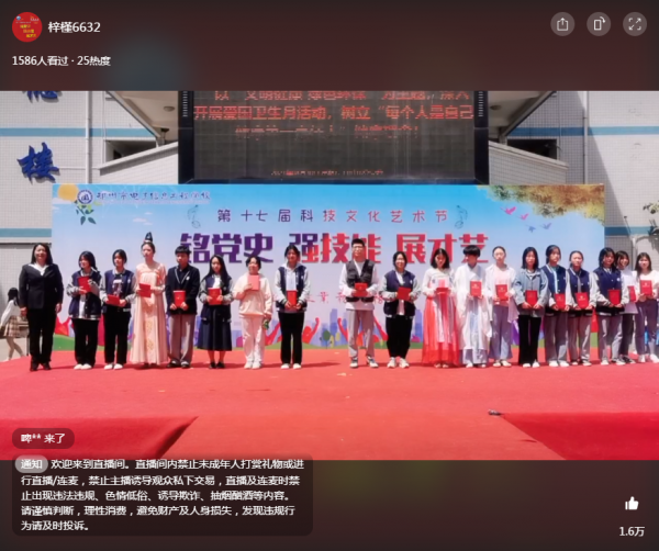 本届科技文化艺术节闭幕式形式多样,内容丰富,更是采用了线上直播的形式,线上线下同步互动,不仅增强了师生的参与感和趣味性,更是扩大了活动的参与范围,增加了影响力。