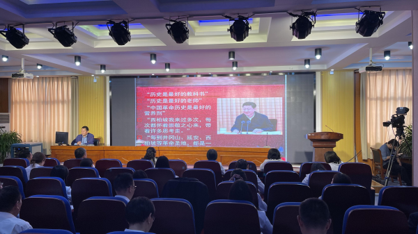 2021年5月11日下午,郑州市委宣讲团成员、郑州工程技术学院行政办公室主任柴生高到郑州市电子信息工程学校进行党史学习教育专题报告会。报告会由学校纪委书记史秀丽主持,学校全体党员和社区党员百余人聆听报告。