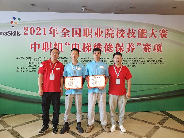7月1日,2021年全国职业院校技能大赛中职组“电梯维修保养”赛项的在泰安闭赛,代表河南省参加该项目的比赛的郑州市电子信息工程学校的选手闫宏武、刘刚,在指导教师葛硕硕、赵鹏飞的辅导下,细心沉着、配合协同、冷静发挥,最终在26支代表队中脱颖而出,荣获二等奖。