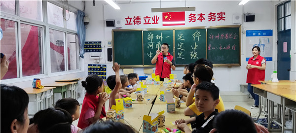 7月21日,走进学校,到处都看到是“红马甲”,学校教师、家属、子女都参与到了志愿服务当中。组织发放被褥、引导分配宿舍、分发餐饮食物到处都是志愿者的身影。为了让避险群众方便生活,学校制定张贴住宿公告,指引居民使用校园设施;播放电影动画,陪伴居民孩子娱乐;开展应急救援培训,教授遇险应对技巧;组织手工制作,充实避险生活。各项志愿服务为避险居民营造了温暖、快乐、充实的环境,得到了新华社、郑州日报、大河报、郑州教育电视台的关注,向社会展示了学校在危难时刻的担当和作为,仁心和大爱。