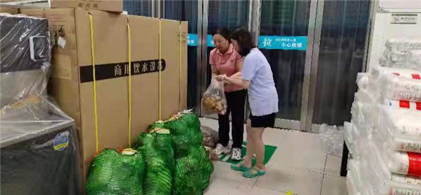 7月24日上午,在区文明办、社区的协调下,顺丰物流公司志愿中原区的蔬果物资,顺利抵达郑州市电子信息工程学校。昔日的快递小哥们,排成流水线,将茄子、苦瓜、圆白菜等急速蔬菜装袋转运,分拨各处。